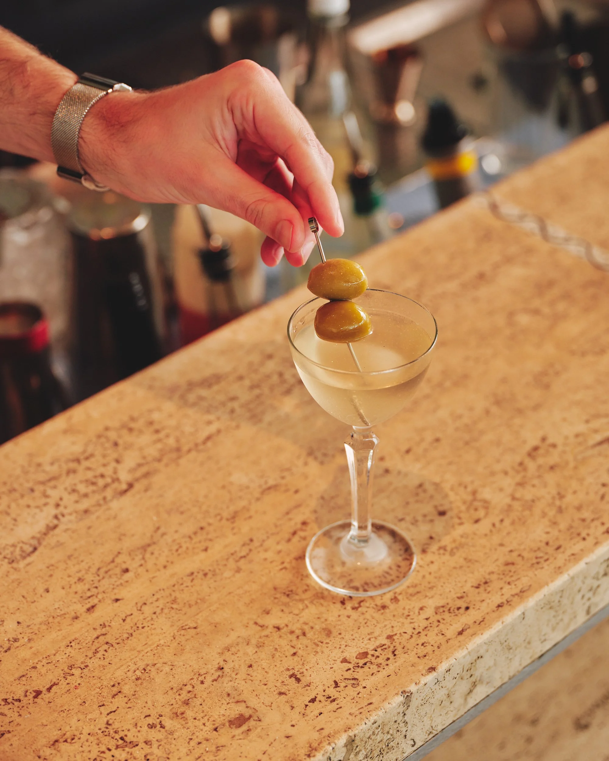 Our espresso martini, elevated with softly spiced rum and hazelnuts